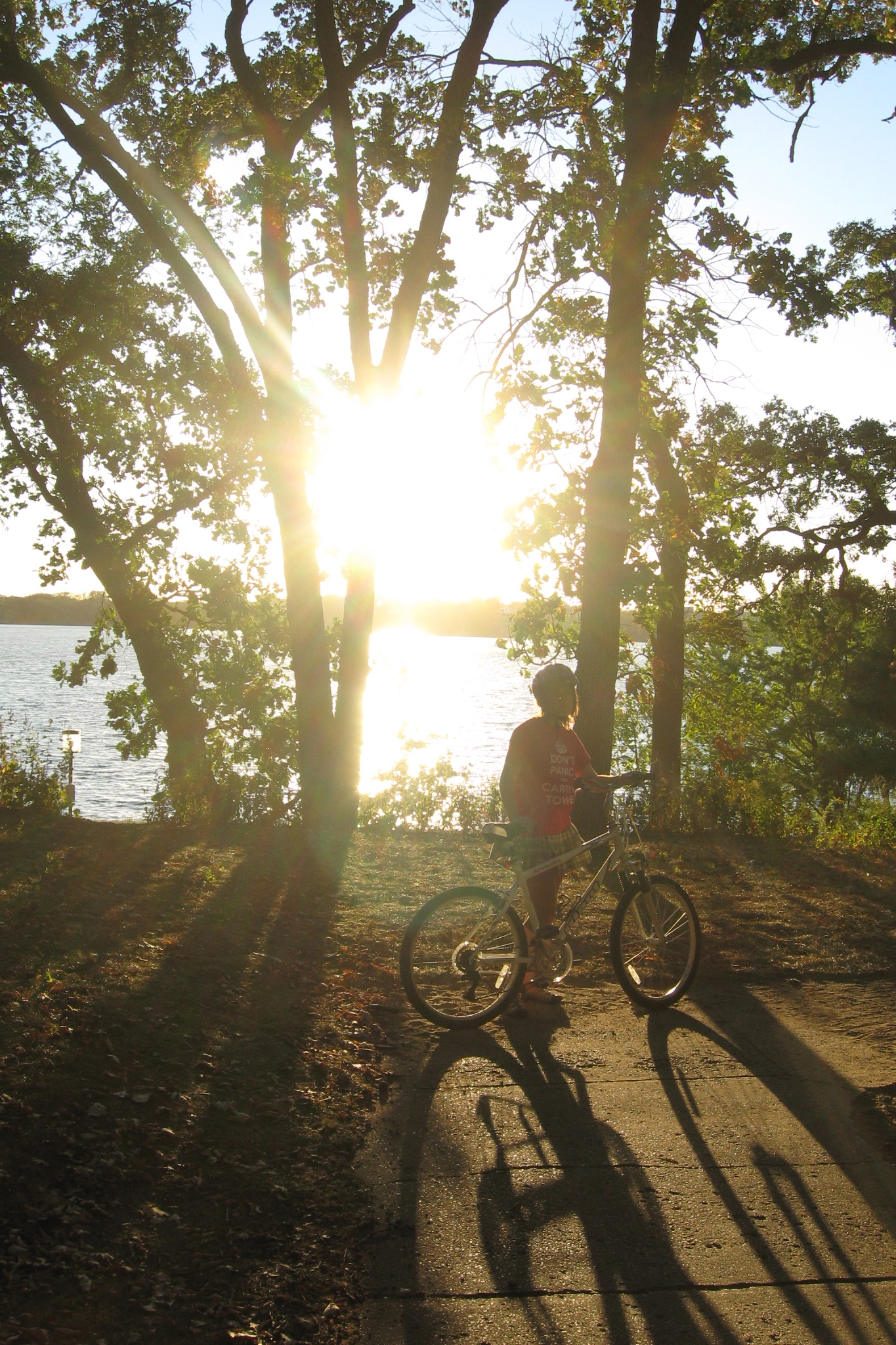 After being quarantined in the house because of whooping cough and excessive heat, a bike ride in the cool of the evening was a like a dream. We stopped and took that photo before going around our lake, so we wouldn’t have to stop along the way.